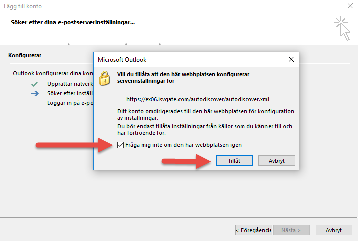 Klicka på kryss rutan bredvid ”Fråga mig inte om den här webbplatsen igen” och sedan på ”Tillåt”